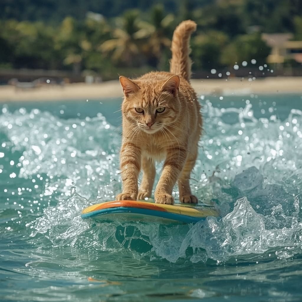 • Une IA générative crée de nouvelles données. Par exemple, si vous lui demandez, elle peut vous générer une image d’un chat faisant du surf. 🏄‍♂️➡️